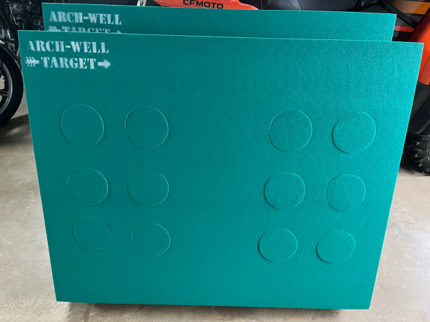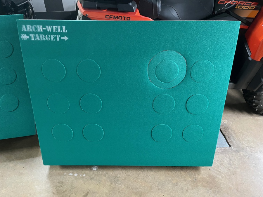 Der linke , untere Spot ist etwa 2cm höher geschnitten, ansonsten ist die Zielscheibe perfekt.